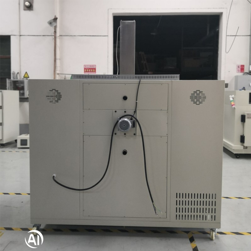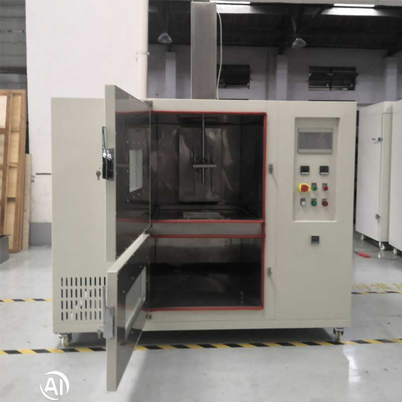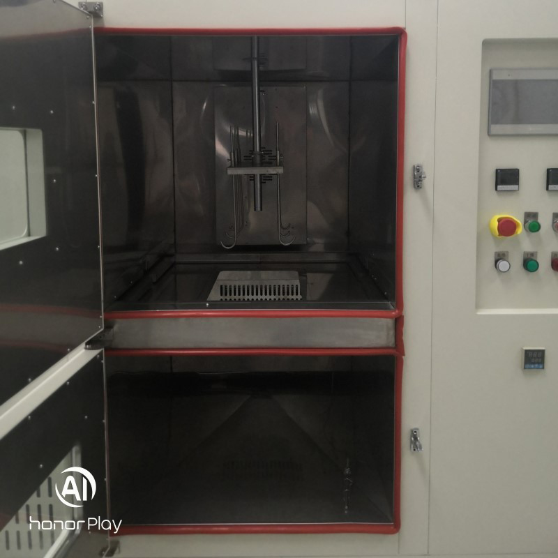2.6. De acordo com os requisitos do teste, os corpos de prova passam por secagem periódica na estufa de secagem e imersão na câmara de imersão em sal. Antes de cada ciclo, as temperaturas de funcionamento do forno de secagem e da câmara de imersão em sal são ajustadas individualmente e os respectivos sistemas de controle de temperatura são ativados. Uma vez que as câmaras atingem as temperaturas de trabalho exigidas, a duração da secagem (por exemplo, 50 minutos) e a duração da imersão (por exemplo, 20 minutos) são configuradas, seguidas pela entrada e ativação de seus respectivos sistemas de controle de temperatura. Uma vez que as câmaras atinjam as temperaturas operacionais necessárias, defina a duração da secagem (por exemplo, 50 minutos) e a duração da imersão (por exemplo, 20 minutos), juntamente com o número de ciclos. Pressione o botão Iniciar (em condições normais, o suporte de amostras é posicionado na câmara de secagem). Os corpos de prova passarão então por ciclos periódicos de secagem e imersão de acordo com o cronograma programado. Após a conclusão do período de secagem (por exemplo, 50 minutos), a porta divisória entre as câmaras de secagem e imersão se abre. A haste elétrica posicionada no topo da câmara abaixa a amostra de teste na câmara de imersão. Simultaneamente, a tampa na parte superior da haste veda a passagem da amostra, isolando as câmaras superior e inferior. Quando o período de imersão (por exemplo, 20 minutos) termina, a haste elétrica levanta a amostra de volta para a câmara de secagem. A porta divisória intermediária fecha automaticamente, isolando novamente as duas câmaras. Esta sequência constitui um ciclo, que se repete de acordo com o número de ciclos predefinido até a conclusão do teste. Além disso, o tempo para cada amostra ficar totalmente submersa ou recuperada não deverá exceder 2 minutos. Além disso, para atender a requisitos especiais, este aparelho está equipado com botões separados para abrir e fechar a porta divisória intermediária. O porta-amostra também possui um botão de levantamento momentâneo, permitindo que a amostra seja levantada ou abaixada conforme necessário para necessidades operacionais.