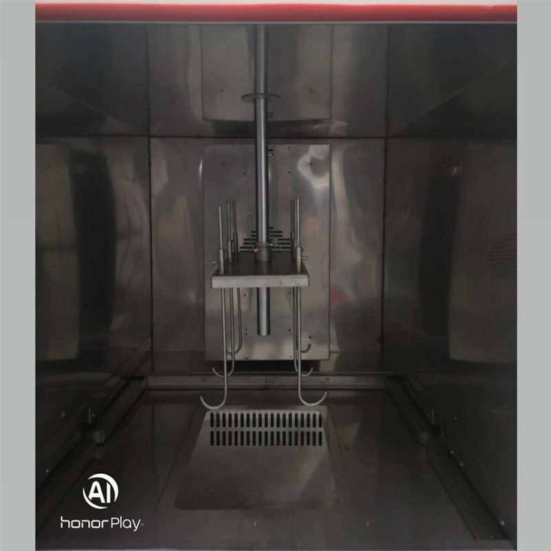 2.2. Para alternar testes de amostras entre as câmaras superior e inferior, uma haste elétrica montada no topo do forno de secagem levanta e abaixa as amostras. O suporte de amostras, fabricado em aço inoxidável 316L, acomoda seis amostras. Uma porta divisória operada eletricamente entre o forno de secagem e a câmara de imersão em sal abre e fecha automaticamente de acordo com a sequência experimental, com botões adicionais de acionamento manual para operação temporária.